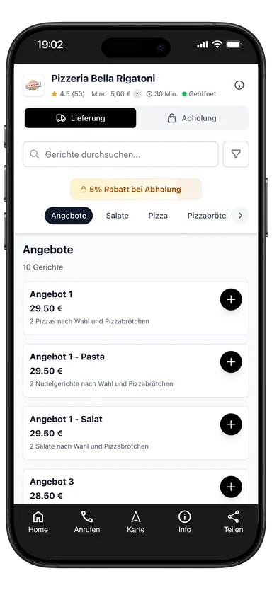 1 Familienpizza nach Wahl und Pizzabrötchen